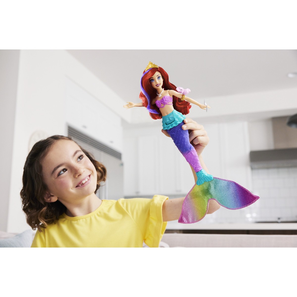 Djeca mogu pričvrstiti ljupkog prijatelja morskog konjića na Arielinu ruku.