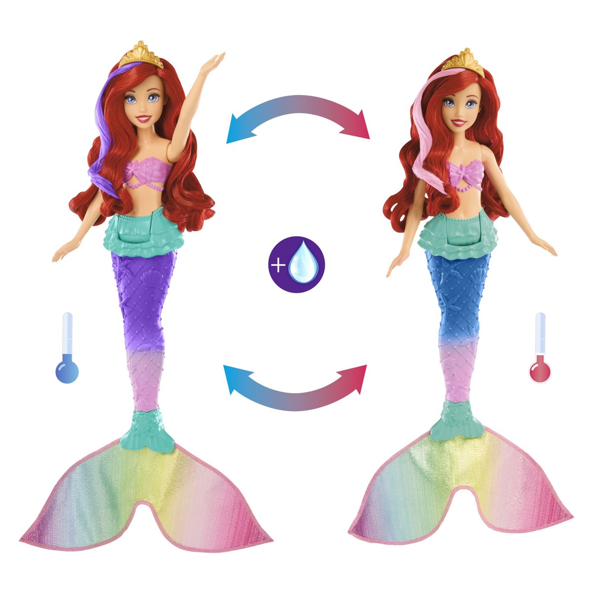 Također mogu koristiti vodu da aktiviraju čarobnu promjenu boje kose i repa lutke Ariel.