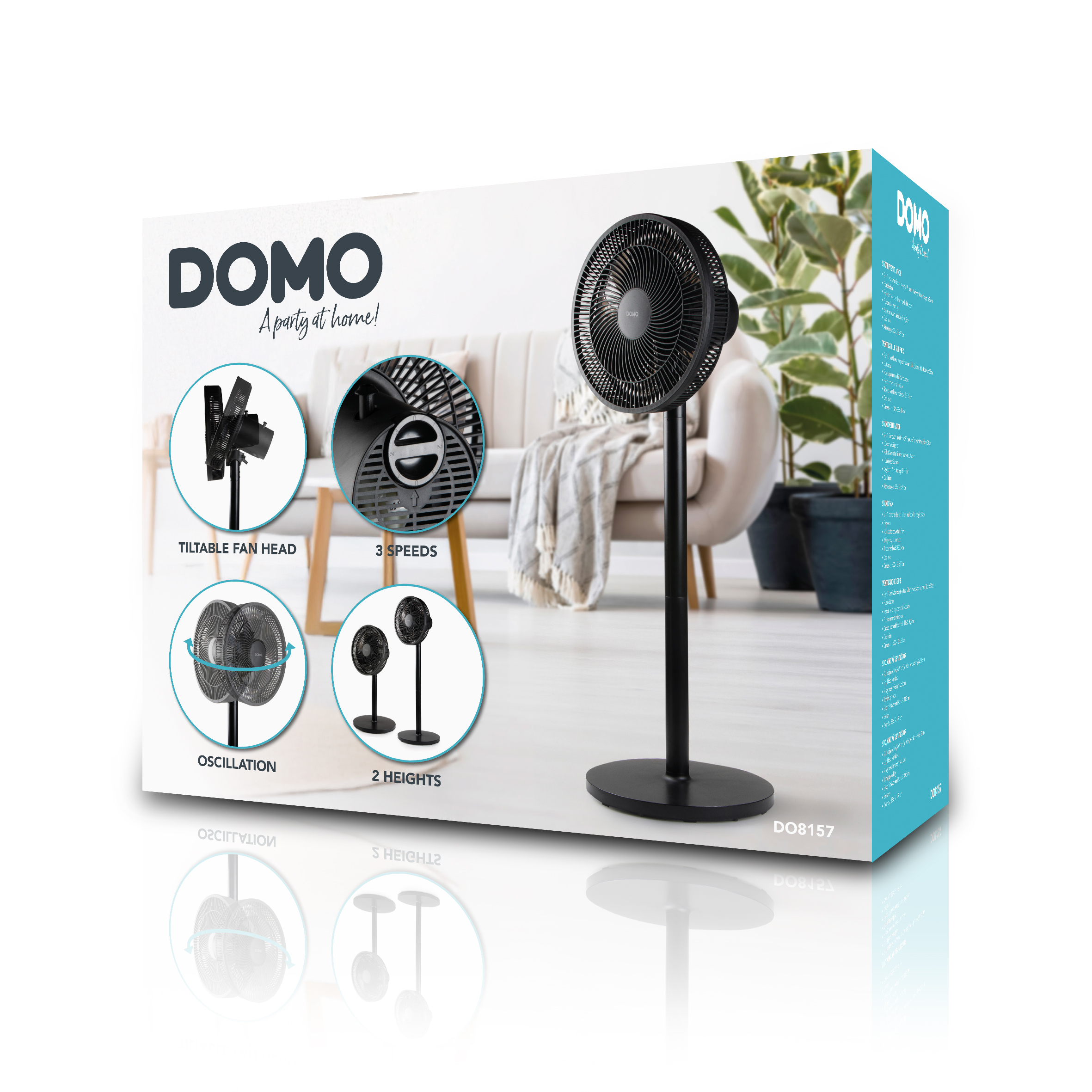 DO8157 Domo ventilator savršen je izbor za svaki prostor u kojem je potrebno učinkovito i prilagodljivo hlađenje. Njegov jedinstveni 2-u-1 dizajn omogućuje korištenje kao podni ili stolni ventilator, nudeći maksimalnu fleksibilnost prema vašim potrebama i raspoloživom prostoru.