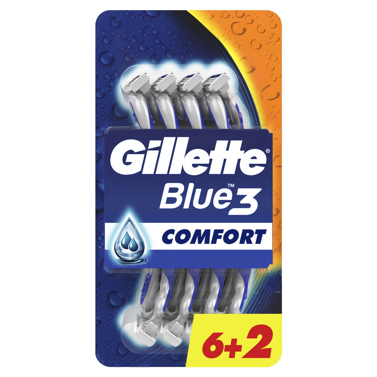 Gillette Blue3 Comfort jednokratna je britvica čije 3 oštrice presvučene kromom osiguravaju do 10 ugodnih brijanja. Glava pokretljiva za 40° lijepo se prilagođava konturama lica, a oštrice se znatno lakše ispiru nego kod britvica Blue II Plus. Lubrikantna trakica s tehnologijom Comfortgel aktivira se u dodiru s vodom za dodatnu svježinu i ugodnost, dok gumena protuklizna drška britvice Gillette Blue3 Comfort dobro sjedi u ruci za bolju kontrolu i preciznost brijanja.
