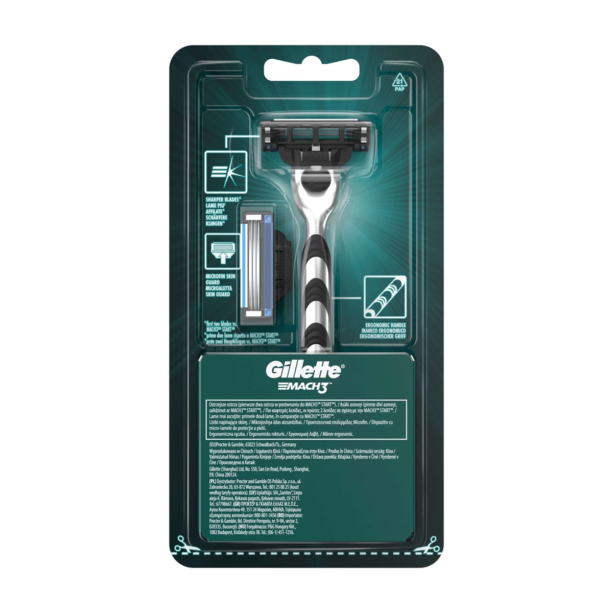 Brijač za muškarce Gillette Mach3 s 3 oštrice, dizajniran je za klasično temeljito brijanje. Ima poboljšana lubrikantna trakica za bolje klizanje. Uživajte u novoj elegantnoj dršci britvice koja dobro leži u ruci i temeljitom brijanju sa stilom. Brijač za muškarce s lubrikantnom trakicom ima oštrice snažnije od čelika koje će vam omogućiti do 15 ugodnih brijanja.