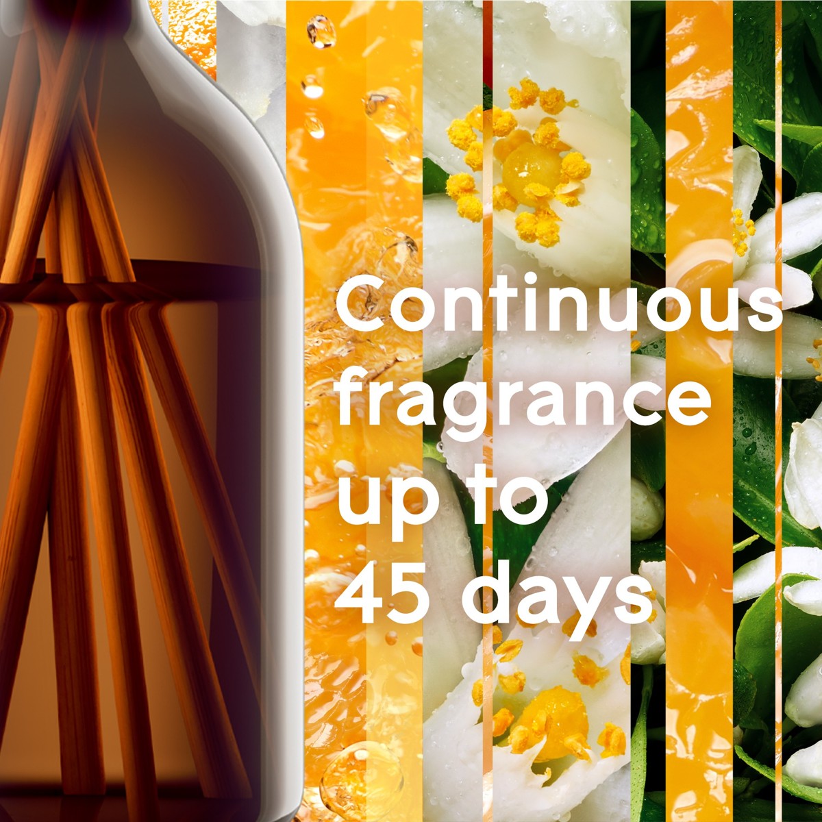 Glade® Aromatherapy Reed Diffuser – Pure Hapiness®, mirisni štapići s dvostrukom mješavinom esencijalnih ulja pružaju do 45 dana svježine. U pakiranju se nalazi 8 štapića od prirdne trske. Ne sadrži parabene, ftalate, nitro mošus, boje ili umjetna bojila. Pronađite mir i sreću se uz umirujuću dugotrajan brazilske sunčane naranče i slatkog cvijeta nerolija iz sjeverne Afrike.