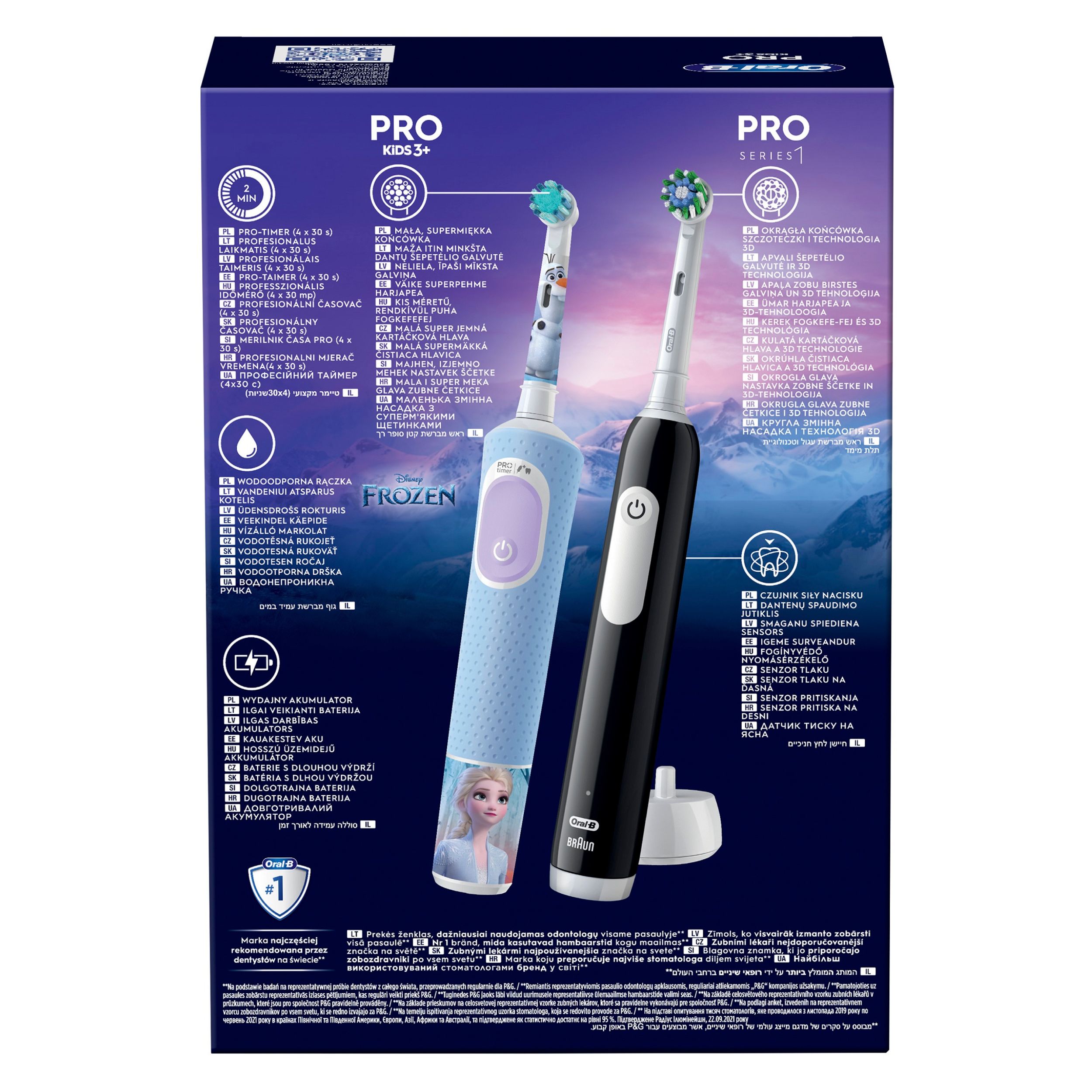ORAL-B Family Edition duopack, set, električna zubna četkica Pro Series 1 Black + Pro Kids 3 + Frozen