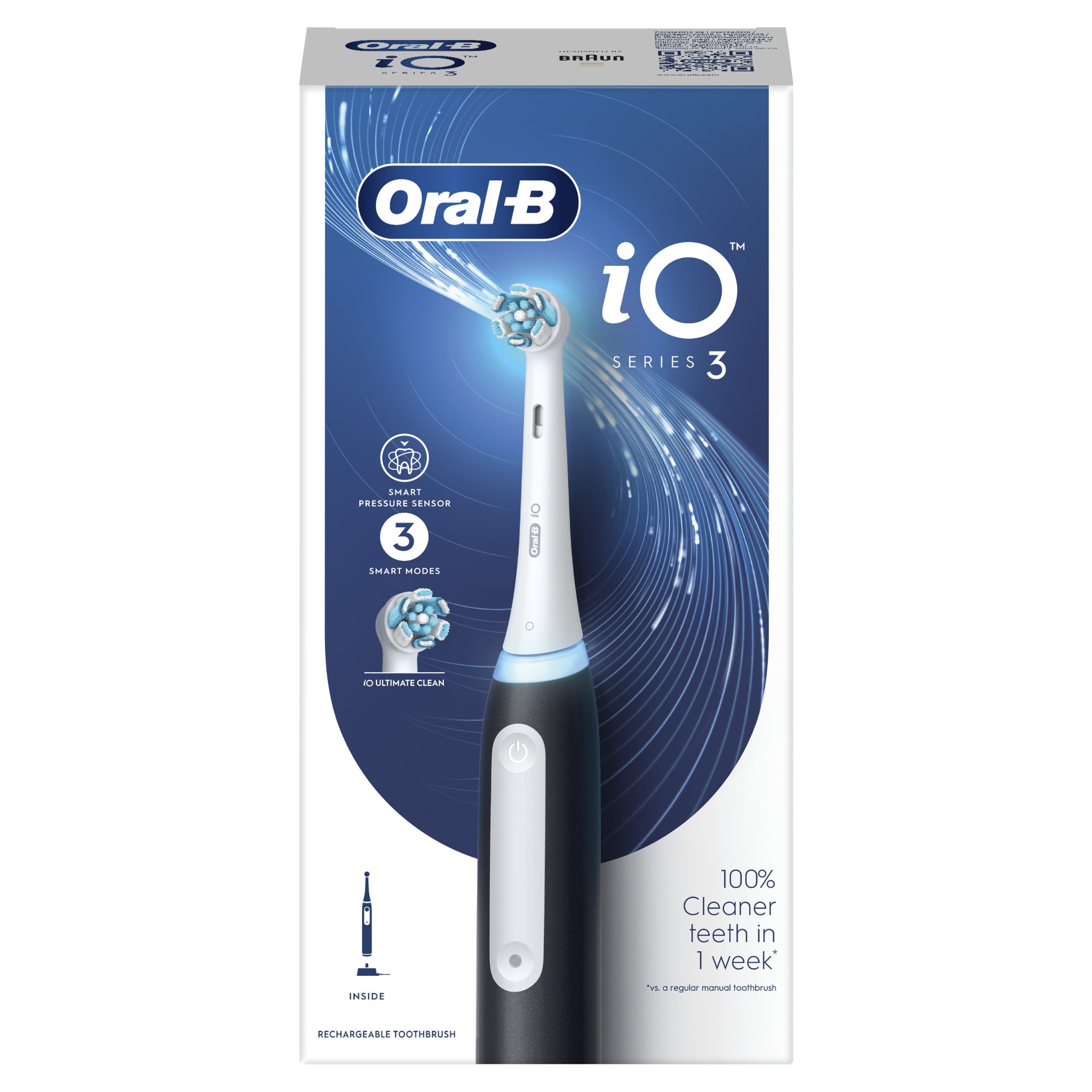 Električna zubna četkica iO 3 donosi najbolju tehnologiju marke Oral-B: kombinaciju okrugle glave zubne četkice nadahnute stomatološkom opremom s mikrovibrirajućim vlaknima za osjećaj kao nakon profesionalnog čišćenja i u udobnosti doma. Pametni senzor pritiska pomaže spriječiti presnažno ili prenježno četkanje za bolju zaštitu desni. Zaštita desni upozorava vas kad četkate presnažnim pritiskom. Za najbolje rezultate, glavu zubne četkice Oral-B iO zamijenite svaka 3 mjeseca.